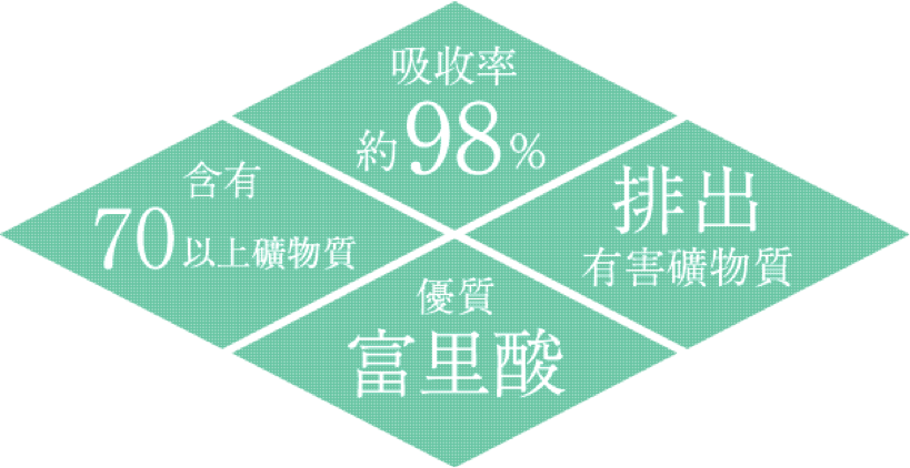 ・礦物質非常均衡 ・吸收率約98% ・70種以上的礦物質
